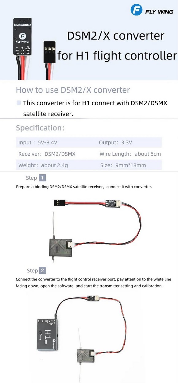 FlyWing DSM2 / DSMX Converter For H1 Flight Controller
